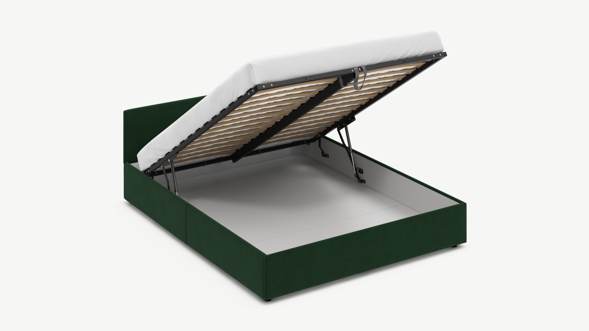 • Скрытая под основанием вместительная емкость без внутренних перегородок позволяет использовать всю площадь подкроватного пространства для хранения вещей.