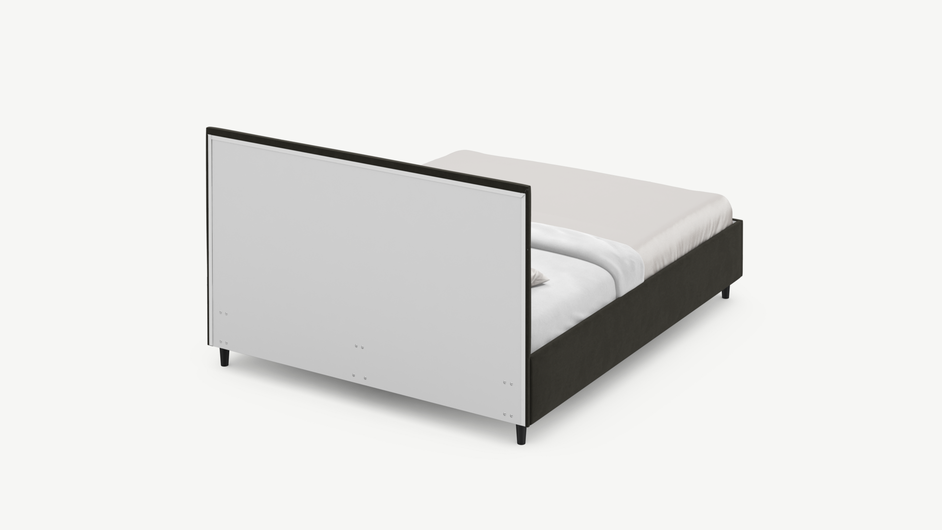 Элегантным и практичным акцентом служат скрытые карманы, расположенные по его углам. Лаконичные формы объемных царг создают единый гармоничный образ и фокусируют внимание на центральном текстурном элементе кровати.