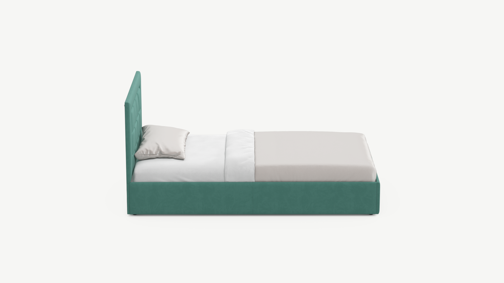 Изголовье декорировано рельефным рисунком стежки в крупный квадрат, получившим особую фактуру за счет глубины шва.