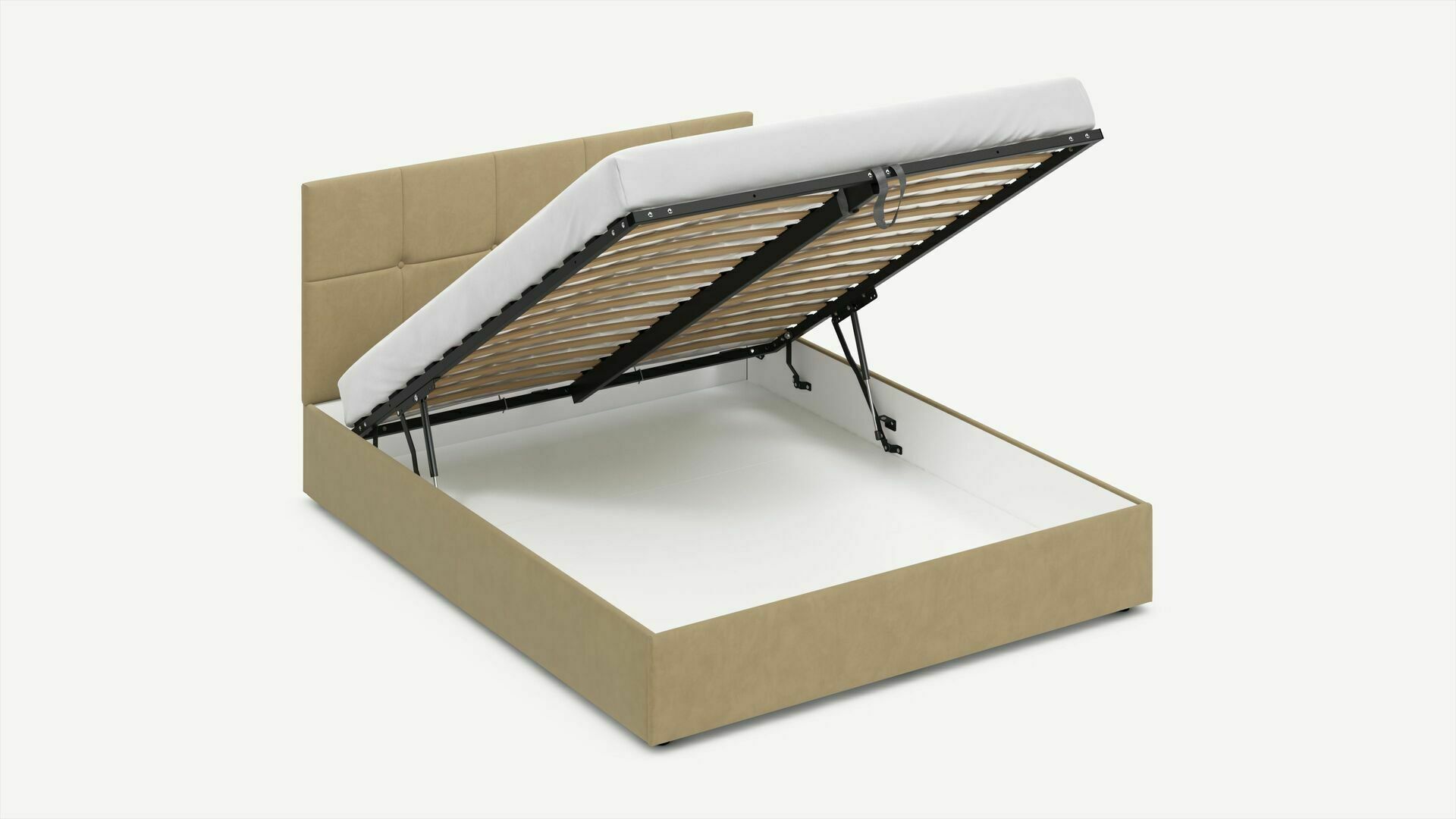 • Скрытая под основанием вместительная емкость без внутренних перегородок позволяет использовать всю площадь подкроватного пространства для хранения вещей.